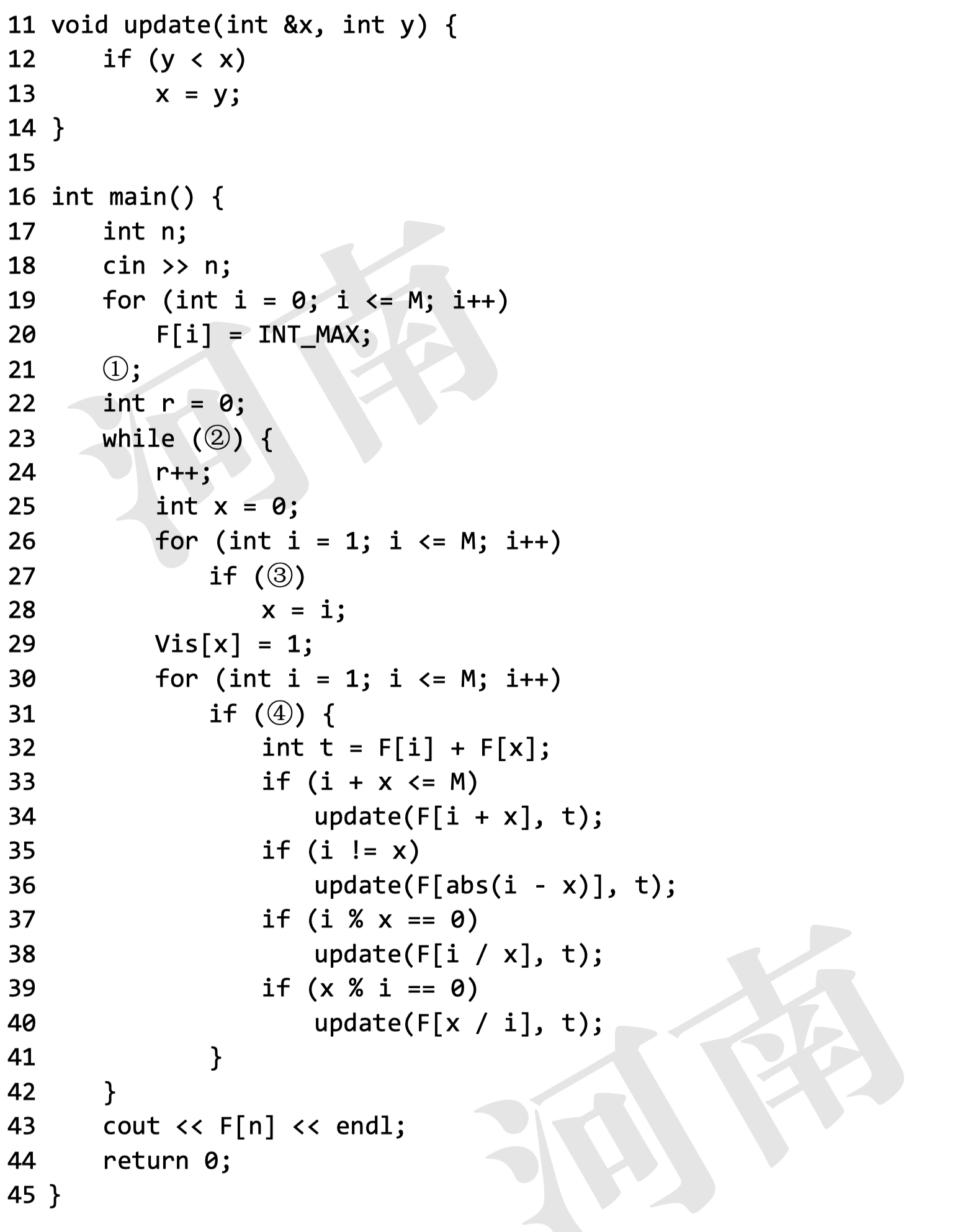 - 第 28 行与第 38 行分别有可能执行两次及以上。( )