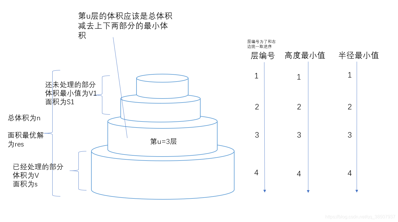 记第层到第u层表面积的累计值, 第1到第层表面积的最小值为
